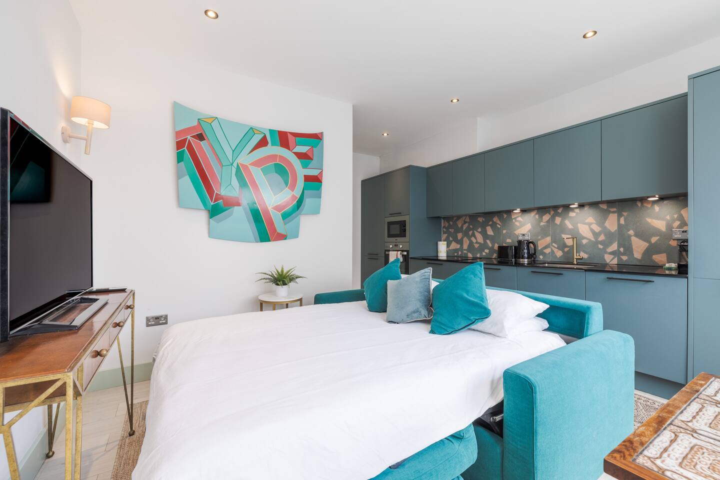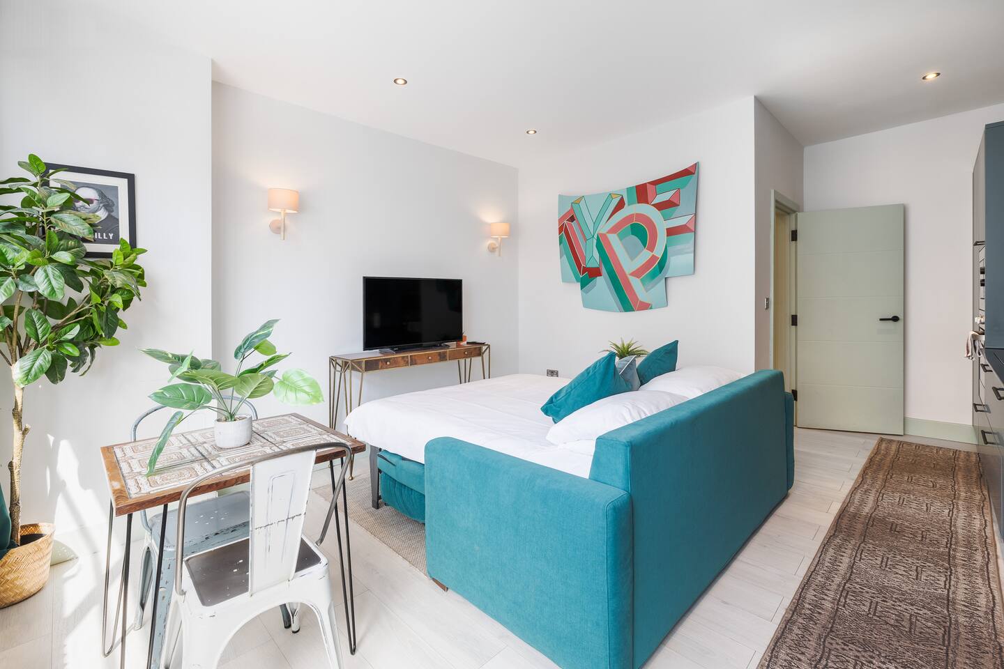 Professionally managed by Noxley London, a serviced apartment provider. Walkthrough video available on request. You can also find it on a well known video hosting website. With a hotel-quality king-size fold-out sofa bed, up to four adults can enjoy the local scene, filled with independent shops, cozy cafes, and delightful restaurants. Immerse yourself in the lively ambiance, a perfect mix of trendy spots and hidden gems waiting to be discovered.