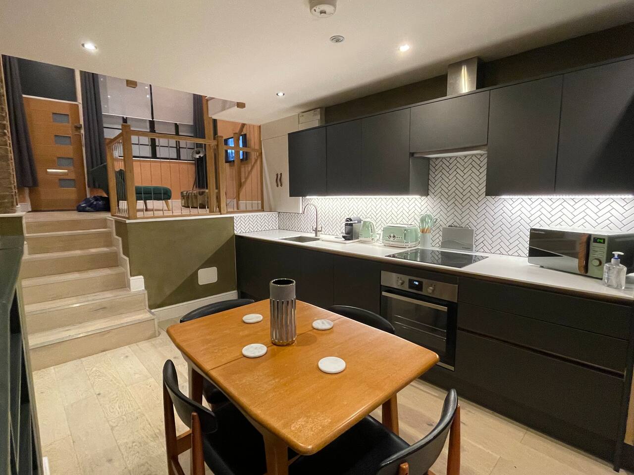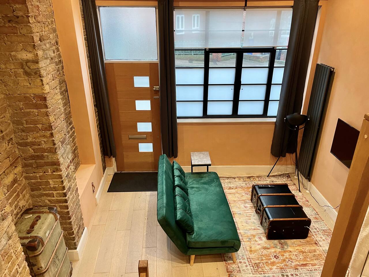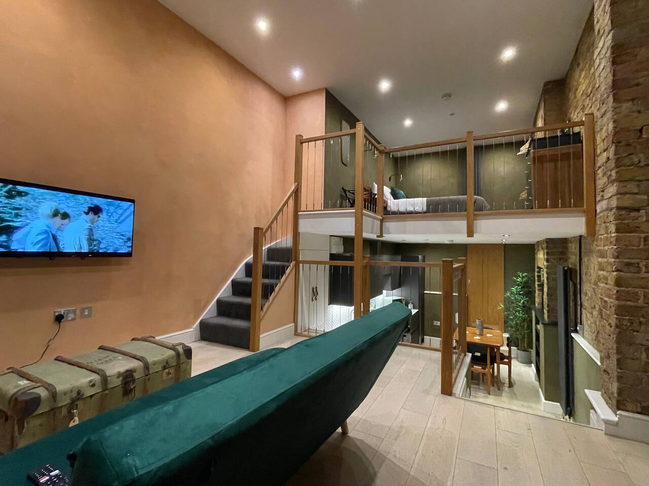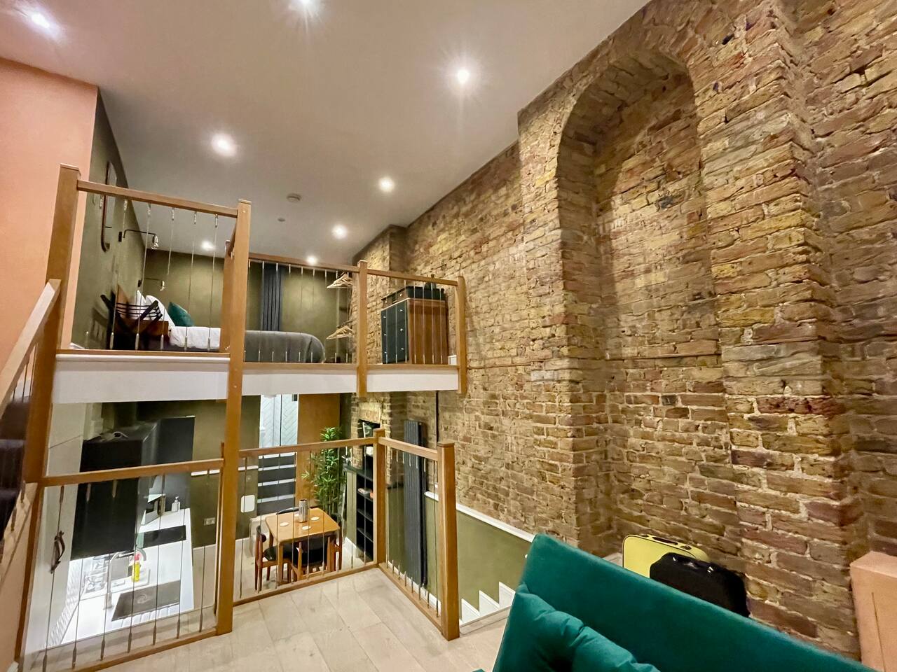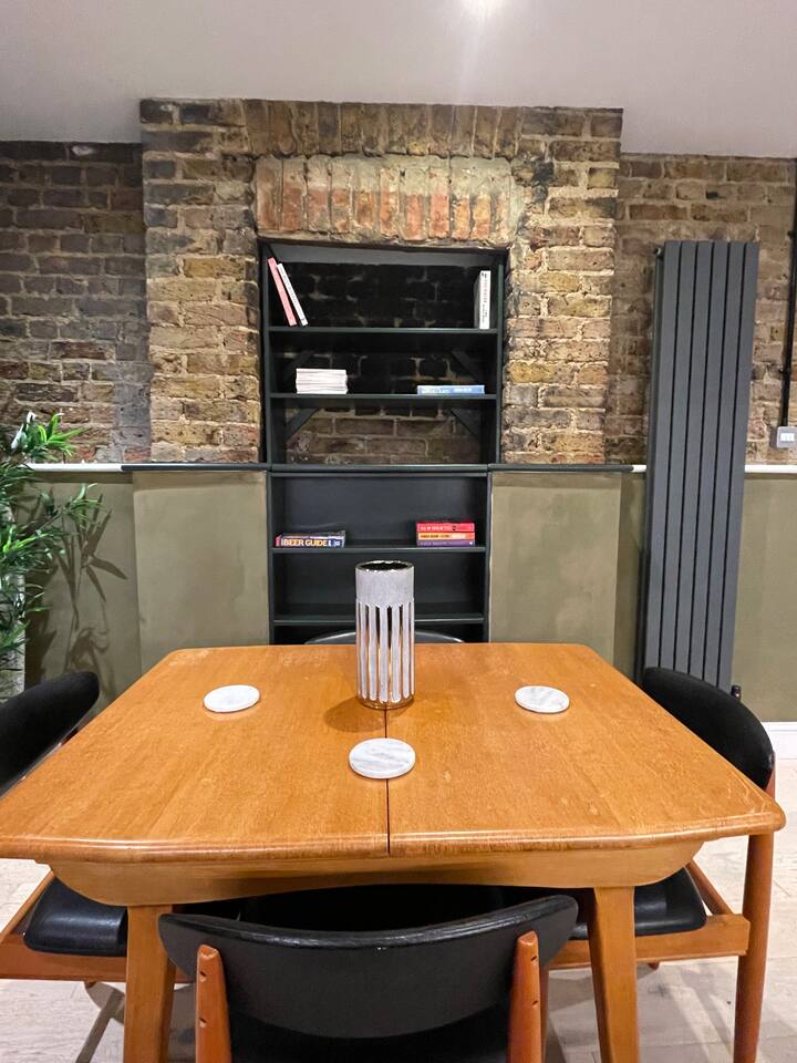 Rated 5.0 out of 5.0 on Airbnb, experience the charm of our newly refurbished 1-bedroom mezzanine apartment, where history meets contemporary comfort. This inviting space showcases the rich character of exposed 120-year-old brick walls adorned with a captivating arch. You'll find yourself immersed in an atmosphere of timeless elegance, thoughtfully adorned with a tasteful blend of stylish mid-century furniture. Unwind in a space that seamlessly combines the best of old-world charm with modern sophistication.